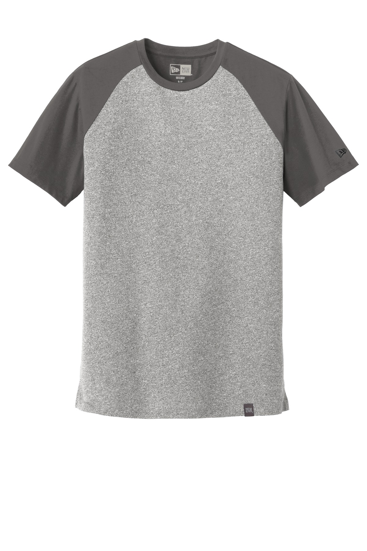 This colorblock tee fuses unbelievable softness with heritage-inspired comfort. 4.4-ounce 60/40 ring spun combed cotton/poly 30 singles Heat transfer label for tag-free comfort Solid color back Faux raglan sleeves Heat transfer New Era flag logo on left sleeve Woven New Era badge at hem Side vents